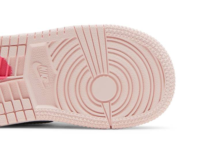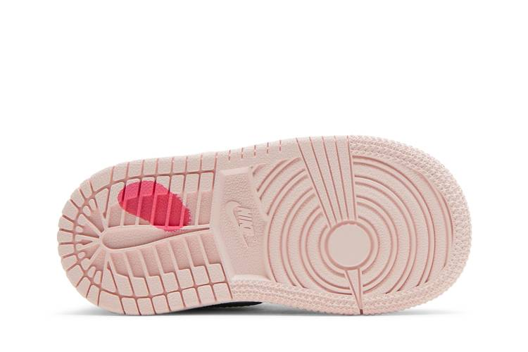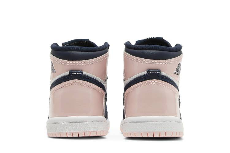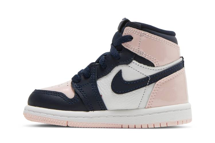 The Air Jordan 1 Retro High OG Atmosphere (Toddler) features a leather upper with white quarter panels, obsidian Swoosh, and patent leather accents in soft pink. The design is inspired...