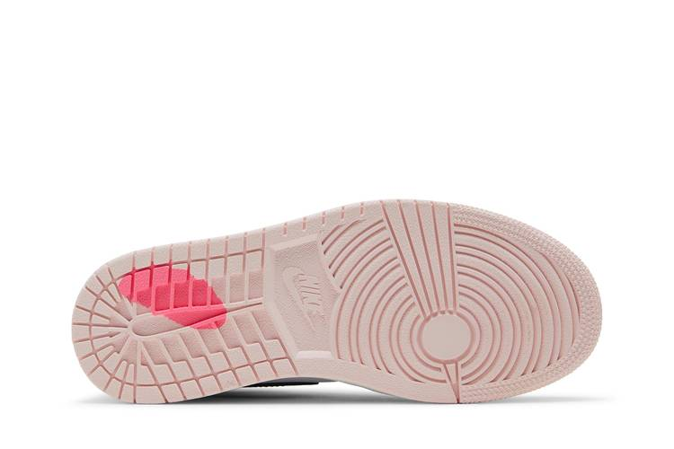 The women’s Air Jordan 1 Retro High OG Atmosphere features a glossy finish with pastel accents, including pink patent leather on the toe box, heel overlay, and collar flap. The...