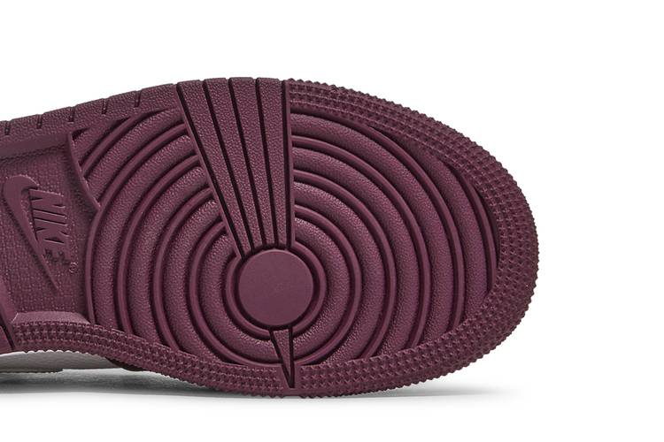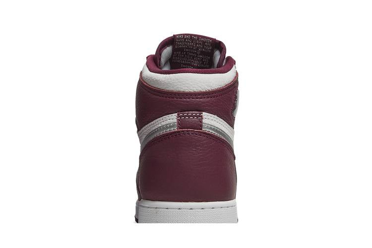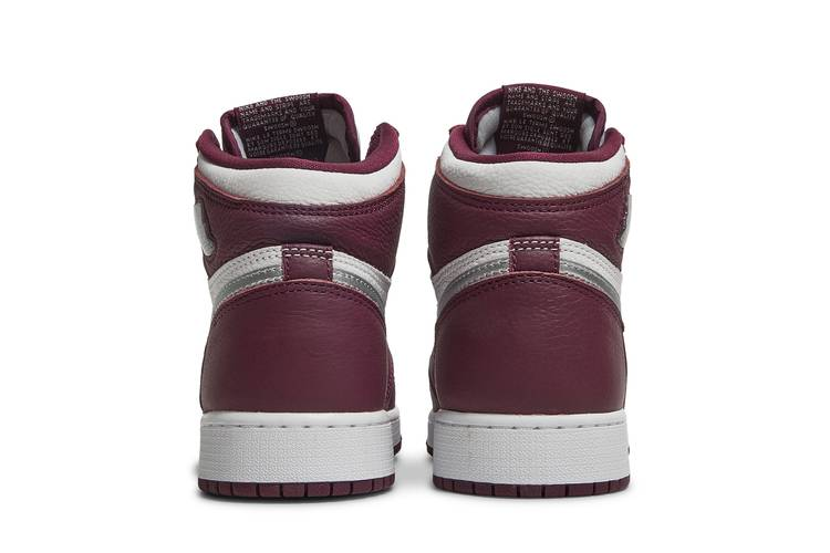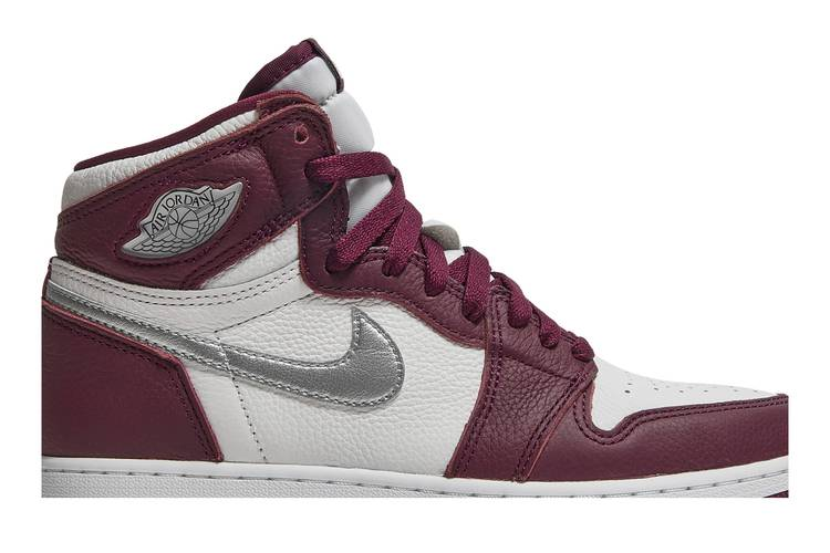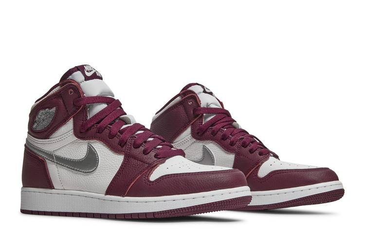 The Air Jordan 1 Retro High OG Bordeaux (GS) is designed for big kids and features elements inspired by the CO.JP releases from 2001. The shoe boasts a two-tone leather upper in white and Bordeaux, with a metallic silver Swoosh and jeweled wings logo. A woven Nike tag on the nylon tongue adds an OG touch. The durable rubber cupsole includes encapsulated Air-sole cushioning in the heel for added comfort. Released as part of the Fall 2021 lineup, this colorway pays homage to the Midnight Navy Air Jordan 1 CO.JP.