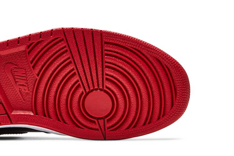 The Air Jordan 1 Retro High OG 'Patent Bred' showcases a glossy patent leather construction in black and Varsity Red. Key design elements include a nylon tongue with a Nike...