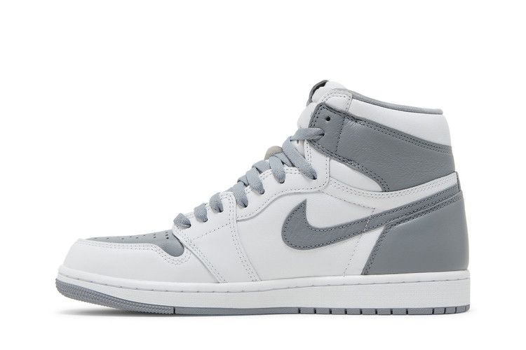 The Air Jordan 1 Retro High OG Stealth combines a stealth grey and white color scheme with premium goat leather construction. Grey accents appear on the laces, overlays, tongue labels,...