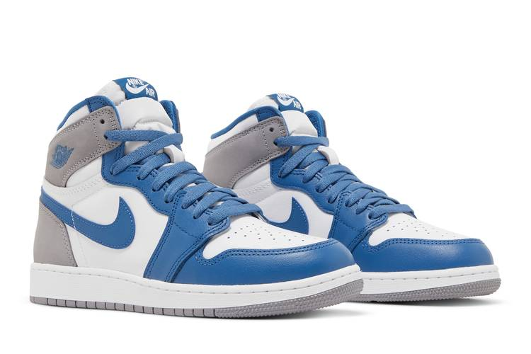 The Air Jordan 1 Retro High OG True Blue (GS) features a true blue, white, and cement grey color scheme with a premium full-grain leather upper. It includes a secure...