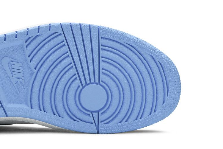 The Air Jordan 1 Retro High OG ‘University Blue’ features a leather upper with white base and powder blue overlays. Black Swoosh and accents, along with a blue outsole. Multi-directional traction and pivot point under forefoot.