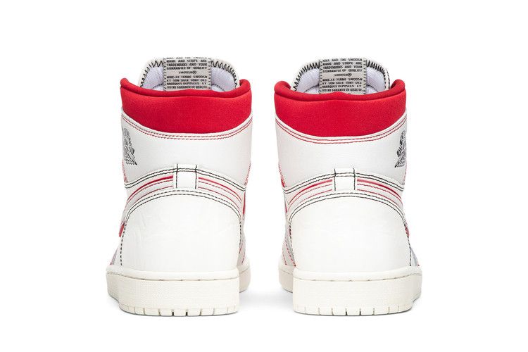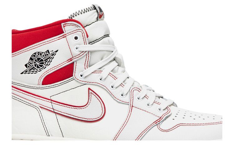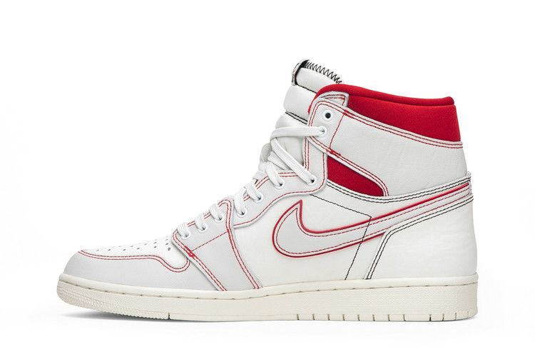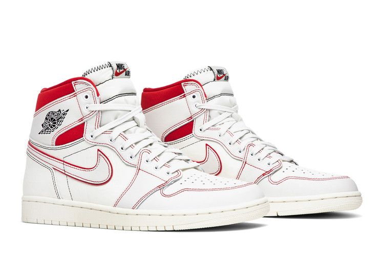 The Air Jordan 1 Retro High Phantom Gym Red GS features a rubber and leather construction with a sail, black, phantom, gym red, and university red color scheme. It includes a wrinkled leather upper, felt ankle and inner lining, and Jordan Wings branding. The design incorporates black contrast stitching, a double-layered Swoosh, and Air cushioning for support. Released on March 30, 2019, the Air Jordan 1 Retro High Phantom Gym Red GS is available now at Side Kicks.