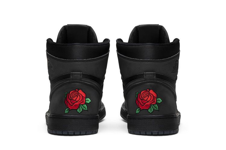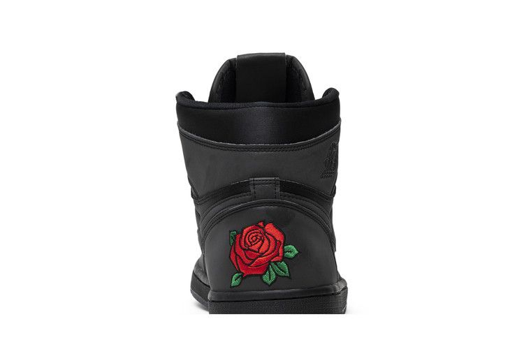 The women's Jordan 1 Retro High Rox Brown (W) features a black upper with a red rose on the heel, a black Nike Swoosh, and matching midsole and outsole. Released...