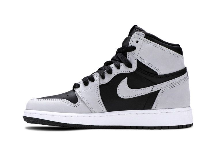 The Air Jordan 1 Retro High Shadow 2.0 (GS) is a stylish and versatile sneaker designed for older kids. Featuring a black leather upper with light grey overlays and a grey Swoosh, this high-top shoe pays homage to the classic Air Jordan 1 'Shadow' colorway. The iconic Nike Air branding on the tongue tag and Wings logo on the collar flap add to the retro appeal. With a durable rubber outsole designed for traction and stability, this sneaker is perfect for everyday wear and casual outings.