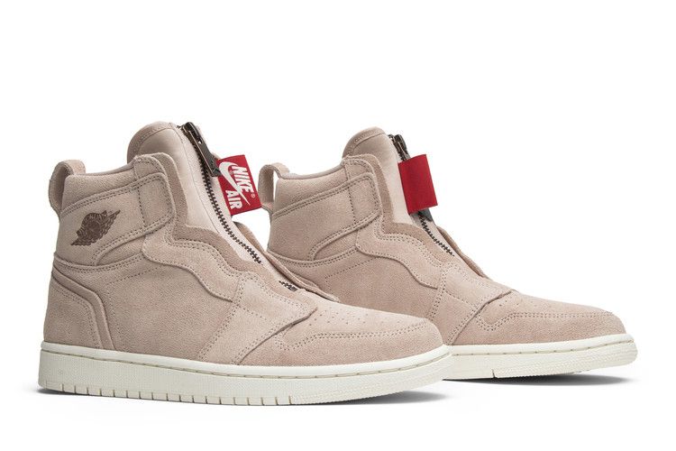 The Air Jordan 1 Retro High Zip Particle Beige (Women's) features a suede upper with a zip closure, replacing the traditional Swoosh design. It retains the classic "Wings" logo and adds a bright red Nike Air tag for contrast. Released on April 13, 2018, the Air Jordan 1 Retro High Zip Particle Beige (Women's) is available now at Side Kicks.