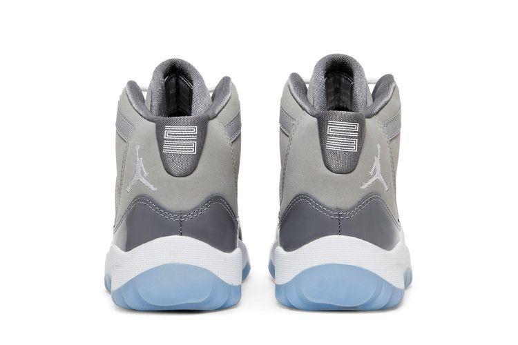 The Air Jordan 11 Retro Cool Grey 2021 PS features a mid-top grey nubuck upper with a glossy patent leather overlay. It includes white Phylon cushioning, a translucent rubber outsole,...