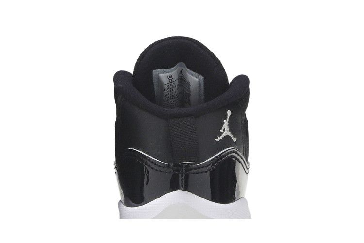 The Air Jordan 11 Retro Jubilee TD combines black and white hues with a mesh and leather upper. Patent leather overlays the mudguard, while a white foam midsole and semitranslucent rubber outsole provide support. The heel features a 'Jordan' branding emblem, and the design is finished with black laces. Released on December 12, 2020, the Air Jordan 11 Retro Jubilee TD is available now at Side Kicks.