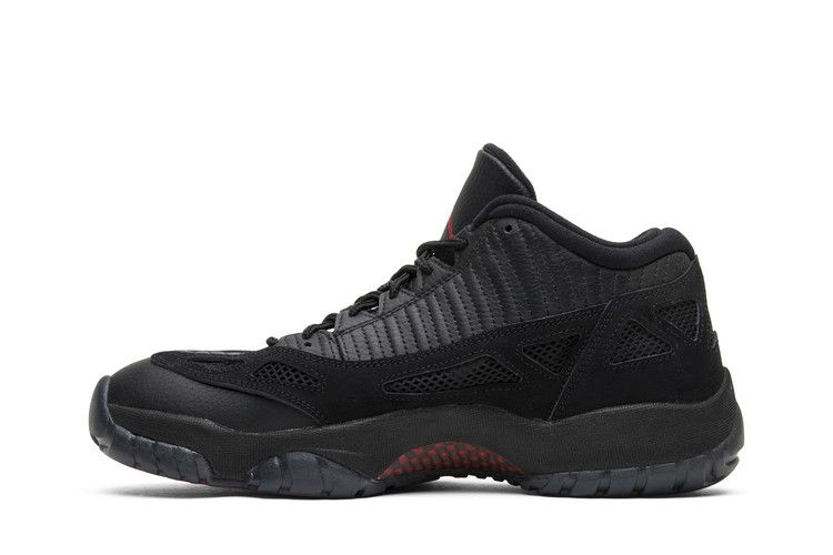 The Jordan 11 Retro Low IE Referee (2015) features a black mesh upper with tumbled leather overlays, matching laces, tongue, sock liner, and insoles. The black foam midsole includes encapsulated...