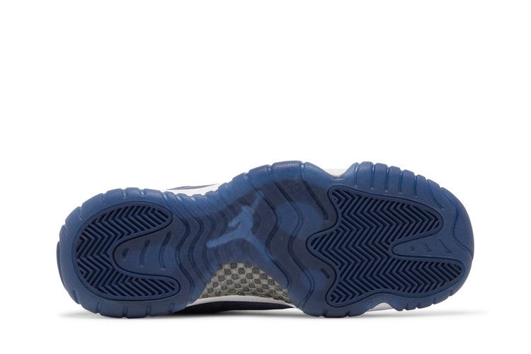 The Air Jordan 11 Retro Midnight Navy W has a monochromatic navy design with a nubuck upper and tonal webbing eyelets. A velvet overlay replaces the traditional patent leather mudguard,...