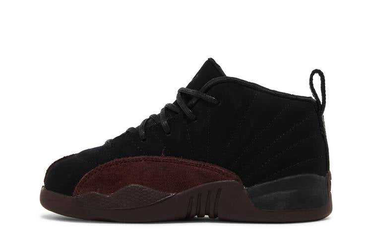 The Jordan 12 Retro SP A Ma Maniére Black (TD) is a premium toddler-sized sneaker featuring black stitched nubuck and Burgundy Crush hairy suede overlays. With waxed laces, quilted lining,...