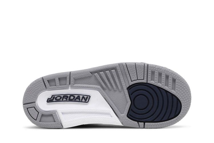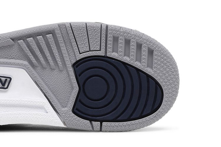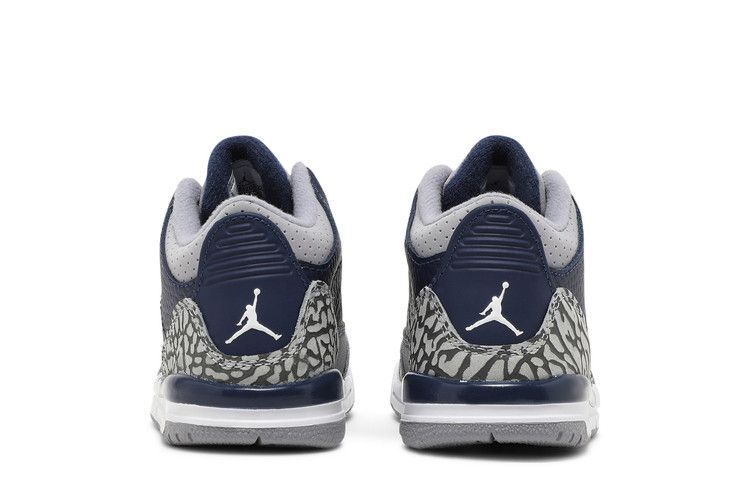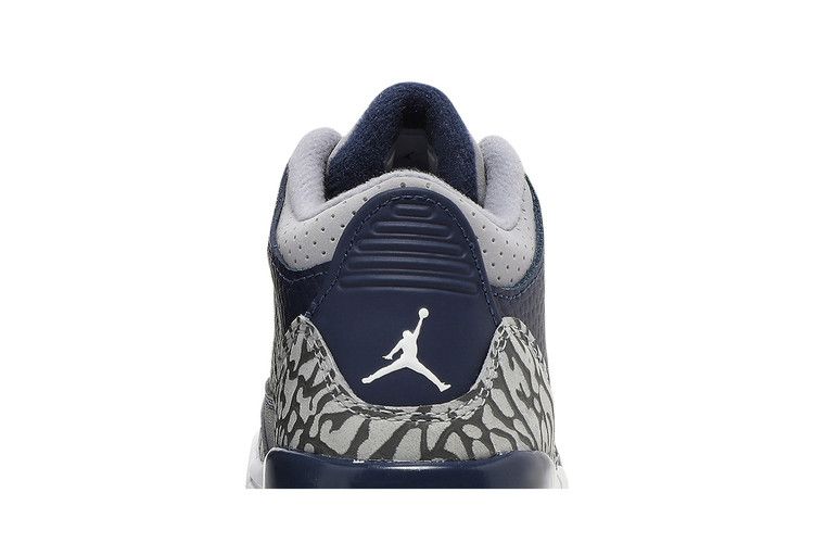 The Jordan 3 Retro Georgetown (2021) (TD) features a Midnight Blue tumbled leather upper with matching overlays above the mudguard. Cement Gray nubuck on the collar and eyestays contrasts with...