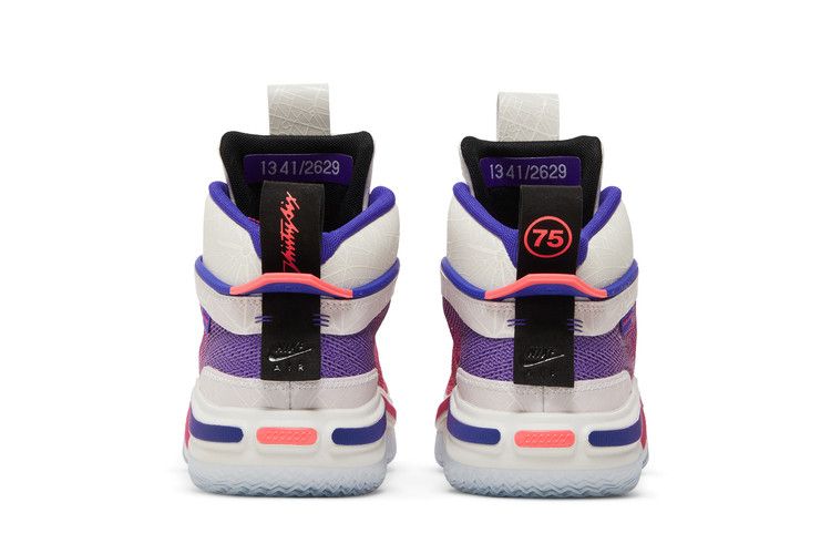 The Jordan 36 Paris features a leno-weave upper in gradient pink-to-purple shades, representing sunrise to sunset. It includes black and cream pull tabs, purple and hot pink Jumpman branding, and...