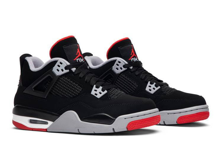 The Air Jordan 4 Retro OG GS 'Bred' 2019 features a black, Cement Grey, Summit White, and Fire Red colorway to celebrate the model's 30th anniversary. Released in May 2019,...