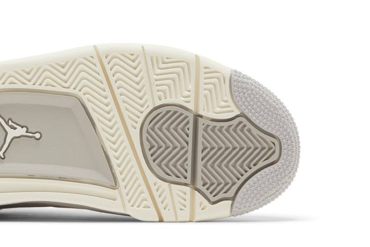 The Women’s Air Jordan 4 Retro ‘Frozen Moments’ showcases a pale grey suede upper with a glossy leather forefoot overlay. Featuring breathable netting on the throat and quarter panel, metallic silver molded eyelets and support wings, and tonal Jumpman branding on the tongue and molded heel tab. Completed with a grey foam midsole and visible Air-sole cushioning in the heel, this sneaker debuted on August 26, 2023, in a color palette of light iron ore, sail-neutral grey, black, and metallic silver.