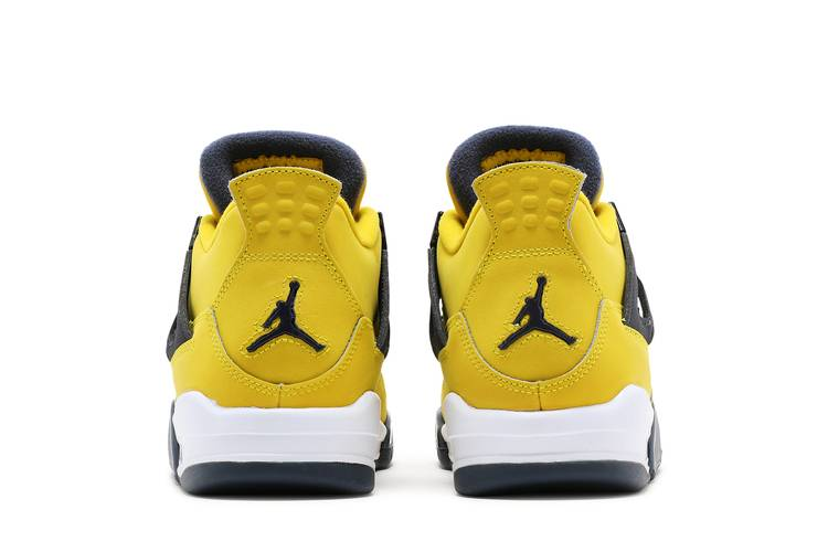 The Air Jordan 4 Retro Lightning (2021) (GS) is a grade school sneaker that brings back the popular 2006 colorway. Featuring a bright yellow nubuck upper with black accents, this mid-top shoe also includes dark grey detailing on the wings and Jumpman logo. The white foam midsole with visible Air-sole cushioning provides comfort, while the grey rubber outsole offers excellent traction with a herringbone pattern. This iconic design is a must-have for any sneaker enthusiast.