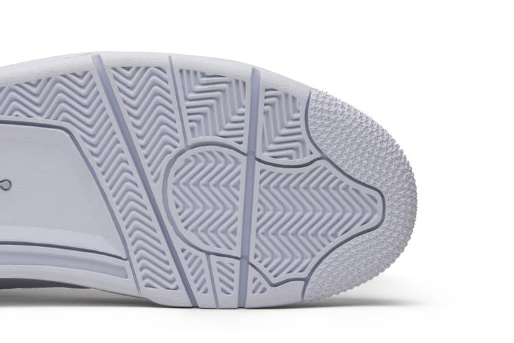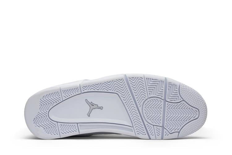 The Air Jordan 4 Retro Pure Money (2017) showcases a sleek white leather upper paired with a matching white rubber sole for a clean and timeless look. This iteration of the iconic silhouette includes chrome eyelets, a chrome Jumpman logo on the heel, and 'Pure$' branding on the back tabs. Originally introduced in 2006, this 2017 release offers a modern take on the classic design, perfect for sneaker enthusiasts and collectors alike.