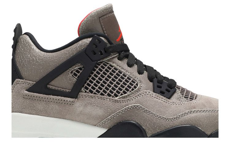 The Air Jordan 4 Retro ‘Taupe Haze’ in grade school sizing features a taupe-colored upper crafted from textured suede and cracked leather. Black accents can be found on the eyelets...