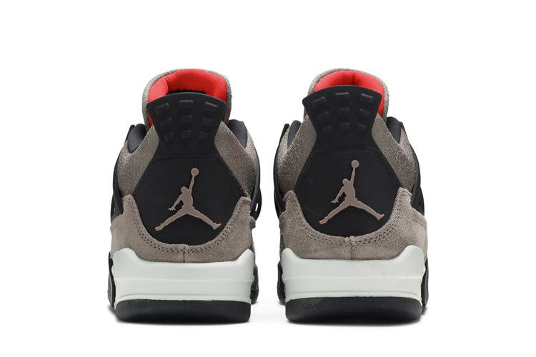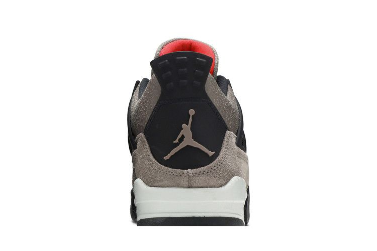The Air Jordan 4 Retro ‘Taupe Haze’ in grade school sizing features a taupe-colored upper crafted from textured suede and cracked leather. Black accents can be found on the eyelets and wings, while Infrared details add a pop of color on the tongue tag. The polyurethane midsole includes visible Nike Air cushioning in the heel for comfort and support. Released on February 27, 2021, this sneaker offers a stylish and versatile addition to any collection.