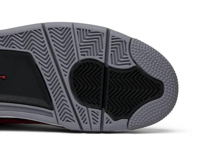 The Air Jordan 4 Retro Toro Bravo features a Fire Red nubuck upper with black and white detailing, cement grey accents, and visible Air-units in the midsole. Released in July...