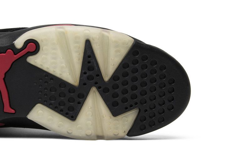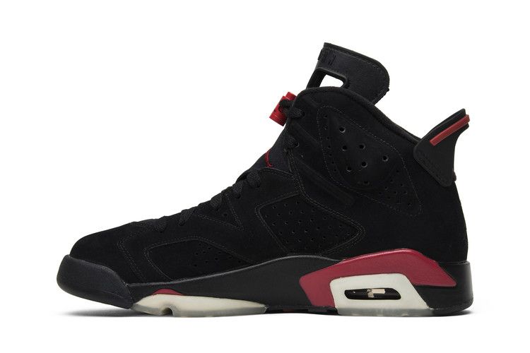 The Air Jordan 6 Retro Black Varsity Red 2010 features a black nubuck upper with infrared accents on the midsole, Jumpman logo, lace lock, and toggle. It includes a clear...