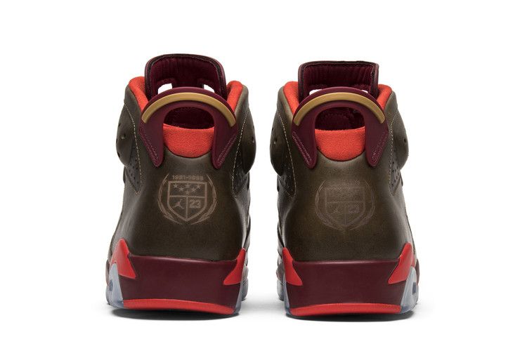 The Jordan 6 Retro Cigar features a premium brown leather upper with gold accents on the tongue and lace lock. Burgundy details appear on the laces, midsole, and heel tab....