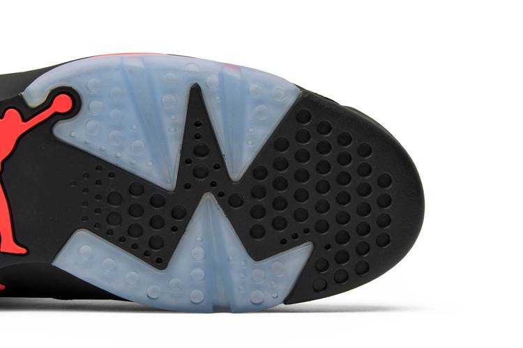 The Air Jordan 6 Retro Infrared Black (2014) is a tribute to the original 1991 release, featuring an all-black nubuck leather upper with infrared accents and a reflective underlay. The design includes a translucent outsole with AIR technology, a black midsole, and a red Jumpman logo on the tongue. Released on November 28, 2014, this model has become a sought-after addition to the Air Jordan 6 collection.