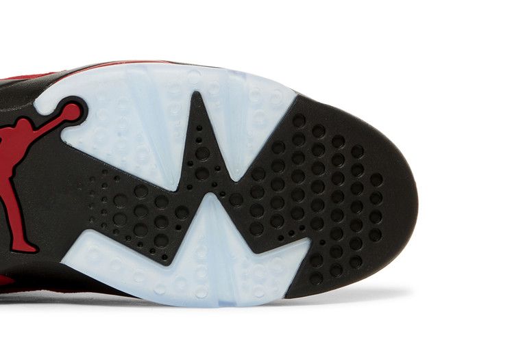 The Jordan 6 Retro Toro Bravo features a Varsity Red premium suede upper with black accents on the midsole and Jumpman logo. A translucent outsole maintains the classic silhouette, while...