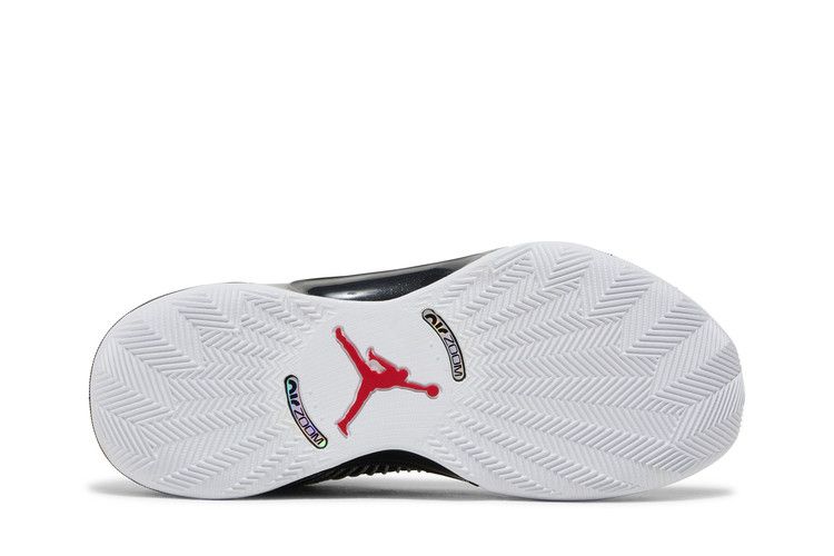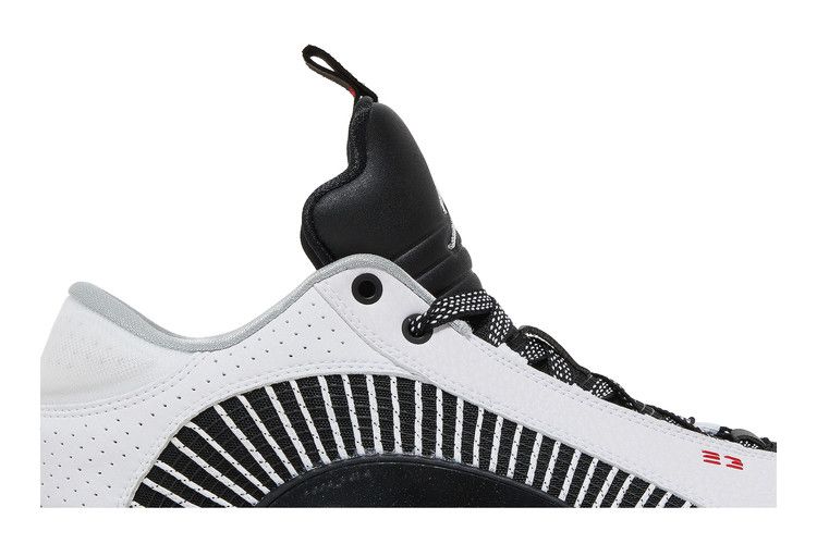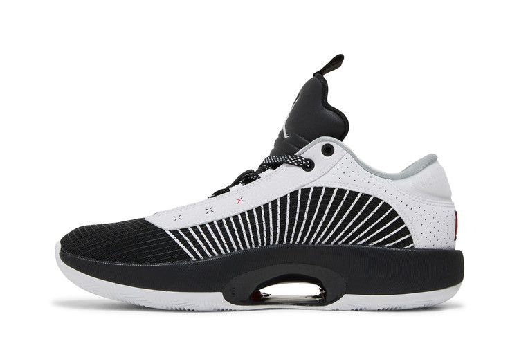 The Jordan XXXV Chinese New Year (2021) features a black and university red upper with white and yellow accents, crafted from leather and synthetic materials. The rubber outsole incorporates Flightwire...