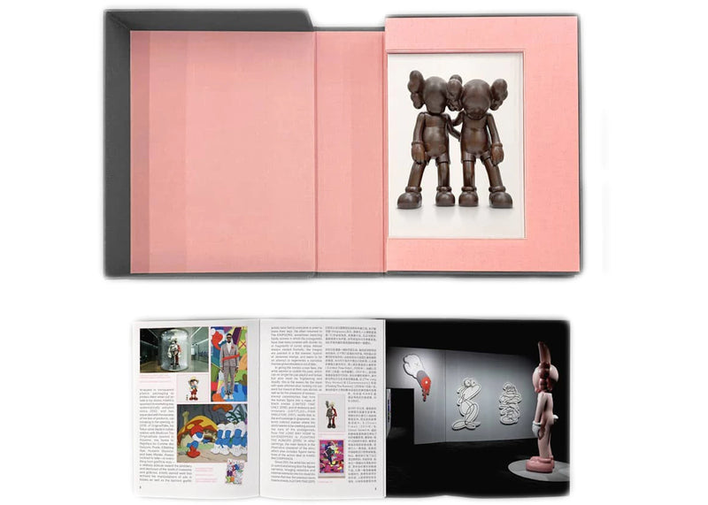 Through collaborations with international businesses, his work exhibits sophisticated humor and deliberate interaction with consumer products through painting, murals, large-scale sculpture, street art, and graphic and product design that is featured in Kaws Along The Way Monograph 2020. Along the way on Cardstock includes 34 offset lithographs on the card, some of which are the artist's most recognizable works to date. The monograph also features an essay, photography exhibition, and vellum placed in a gray clamshell box.