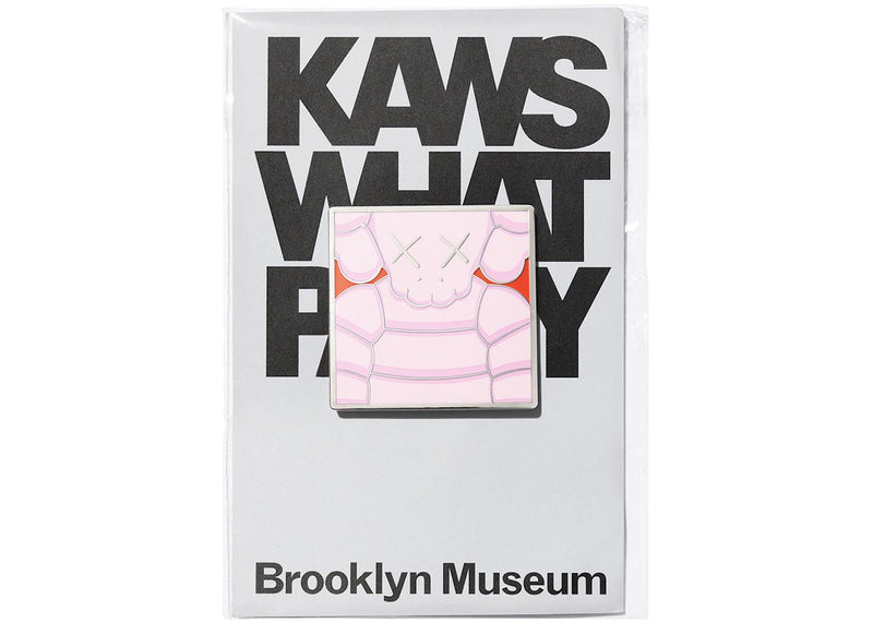 The KAWS Brooklyn Museum WHAT PARTY Square Pin Light Pink is now available at Side Kicks!