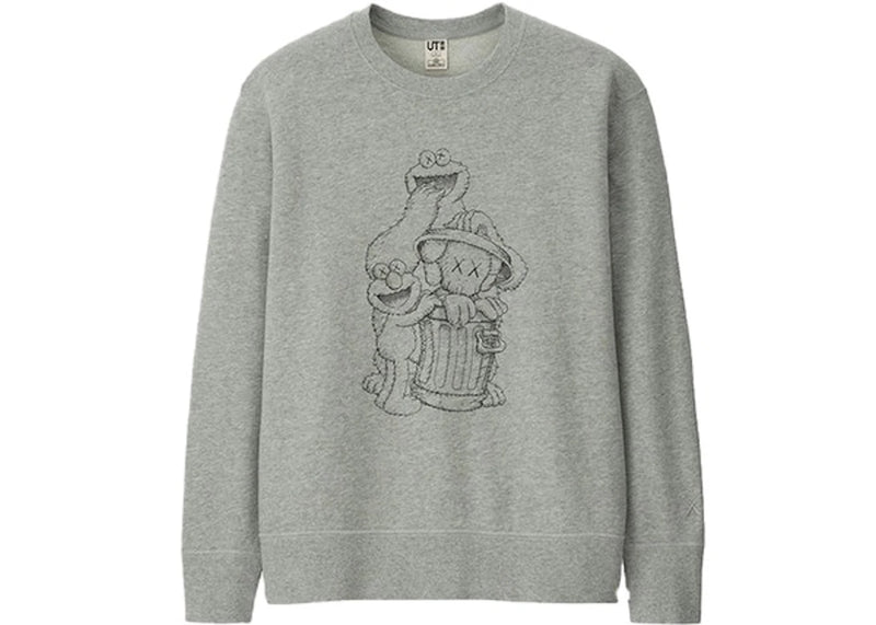 The KAWS x Uniqlo x Sesame Street Companion Trash Can Outline Sweatshirt (Japanese Sizing) Gray is now available at Side Kicks!