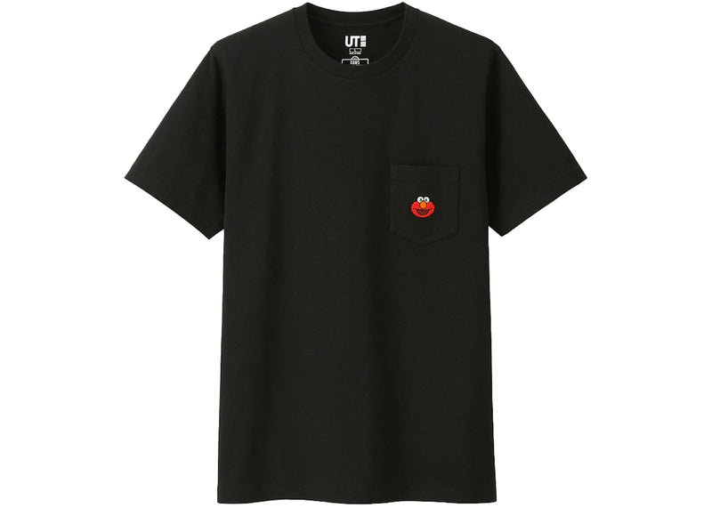 The KAWS x Uniqlo x Sesame Street Elmo Pocket Tee Black is now available at Side Kicks!