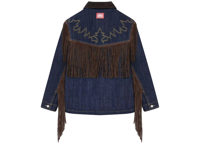 KENZO x LEVI'S Genderless Fringed Denim Jacket Rinse Blue Denim