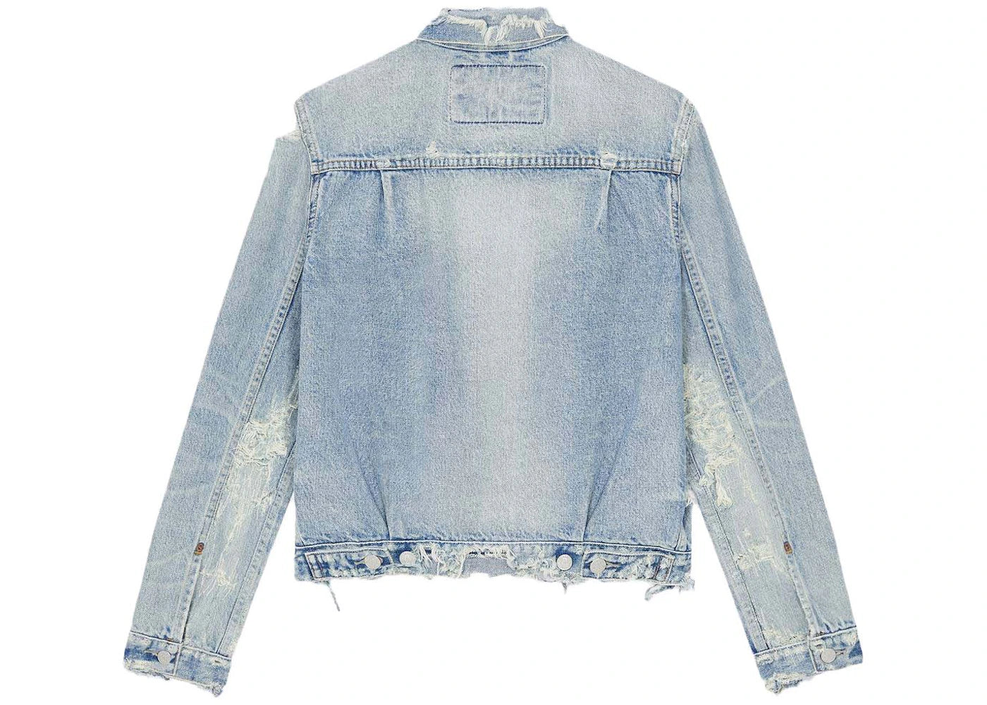The KENZO x LEVI'S Type II Distressed Genderless Denim Trucker Jacket Stone BI Dirty Blue Denim is now available at Side Kicks!...