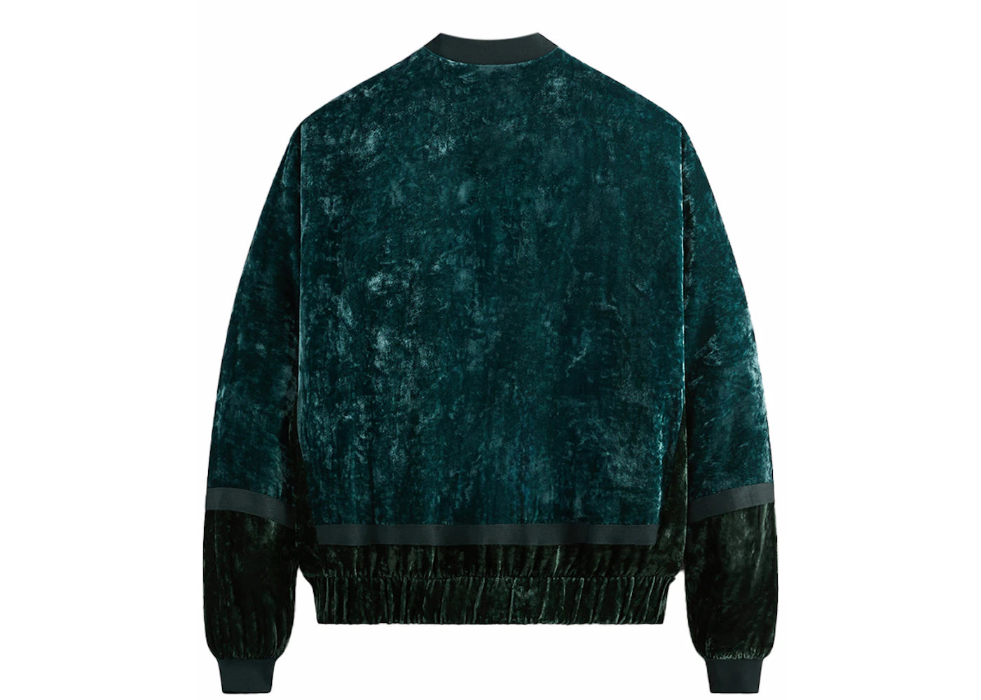 The Kith & Kin Crushed Velvet Silas Bomber Jacket Algae is now available at Side Kicks!