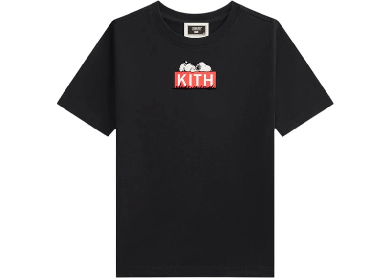 The Kith x Peanuts Kids Doghouse Classic Logo Tee Black is now available at Side Kicks!