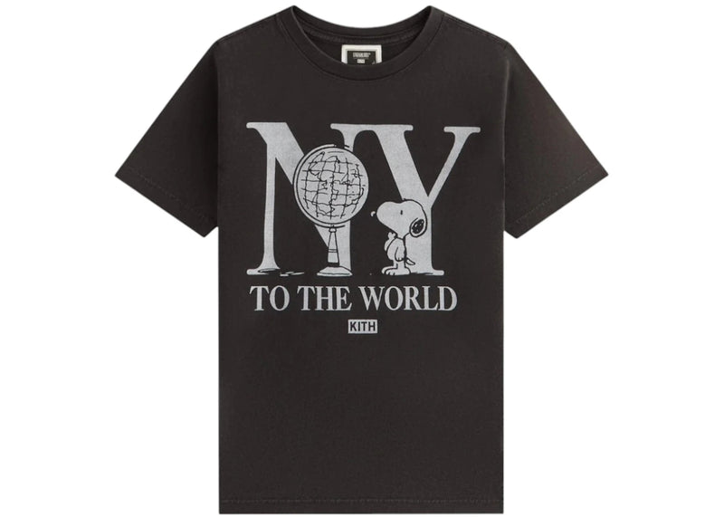 The Kith x Peanuts Kids New York To The World Vintage Tee Black is now available at Side Kicks!