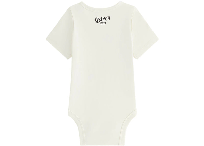 The Kith x The Grinch Baby Classic Logo Bodysuit Sandrift is now available at Side Kicks!