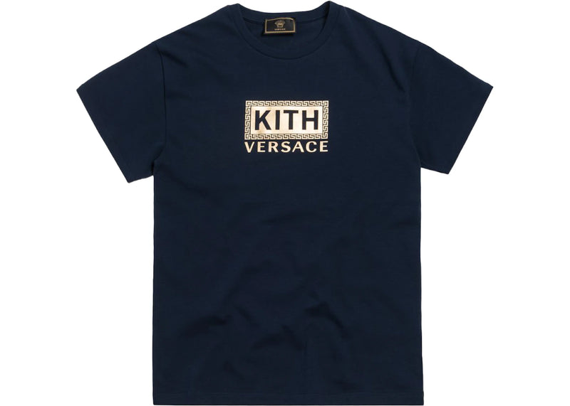 The Kith x Versace Greek Key Tee Navy is now available at Side Kicks!