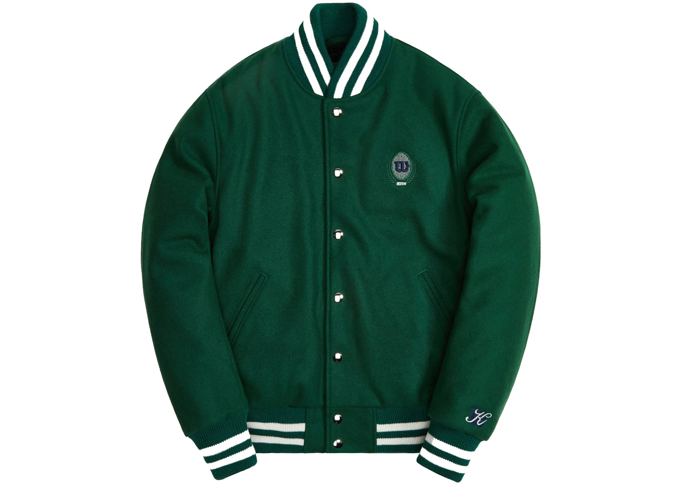 The Kith x Wilson Willets Suede Varsity Jacket Conifer is now available at Side Kicks!
