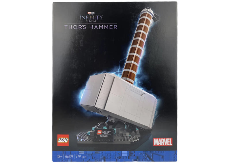 Celebrate The Avengers and their epic journey to save the universe with the LEGO Marvel Studios Thor’s Hammer Set 76209. Thor’s Hammer also known as his Mjolnir consists of 979 pieces and measures over 18" high and 11.5" wide. Thor’s Mjolnir comes equipped with a secret compartment that features the micro Infinity Gauntlet, Tesseract and Odin’s Fire. The set also comes with a Infinity Series Thor minifigure and a special stand to make this a perfect display piece for any Marvel fan.