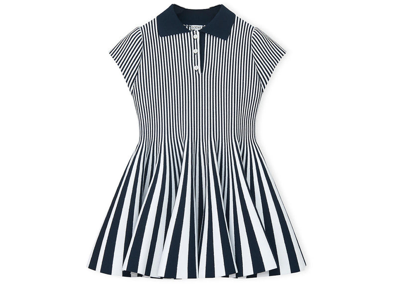 The LOEWE Striped Mini Viscose Blend Knit Dress Navy/White is now available at Side Kicks!
