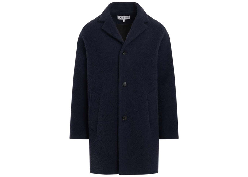 The LOEWE Textured Wool Coat Navy Blue is now available at Side Kicks!