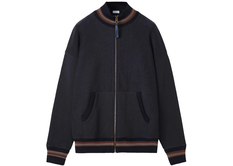 The LOEWE Zip-up Ribbed Cotton Jacket Dark Navy Blue is now available at Side Kicks!