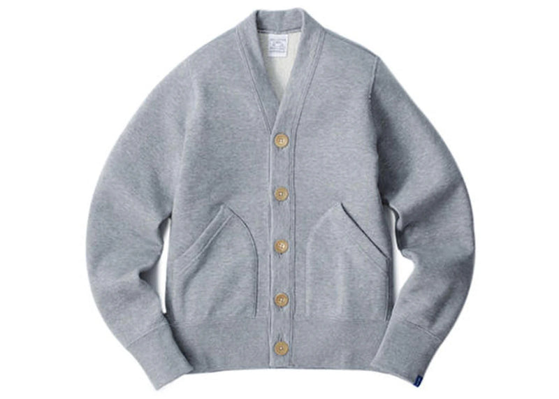 The Loopwheeler LW180 Loop Knit Cardigan Grey Melange is now available at Side Kicks!