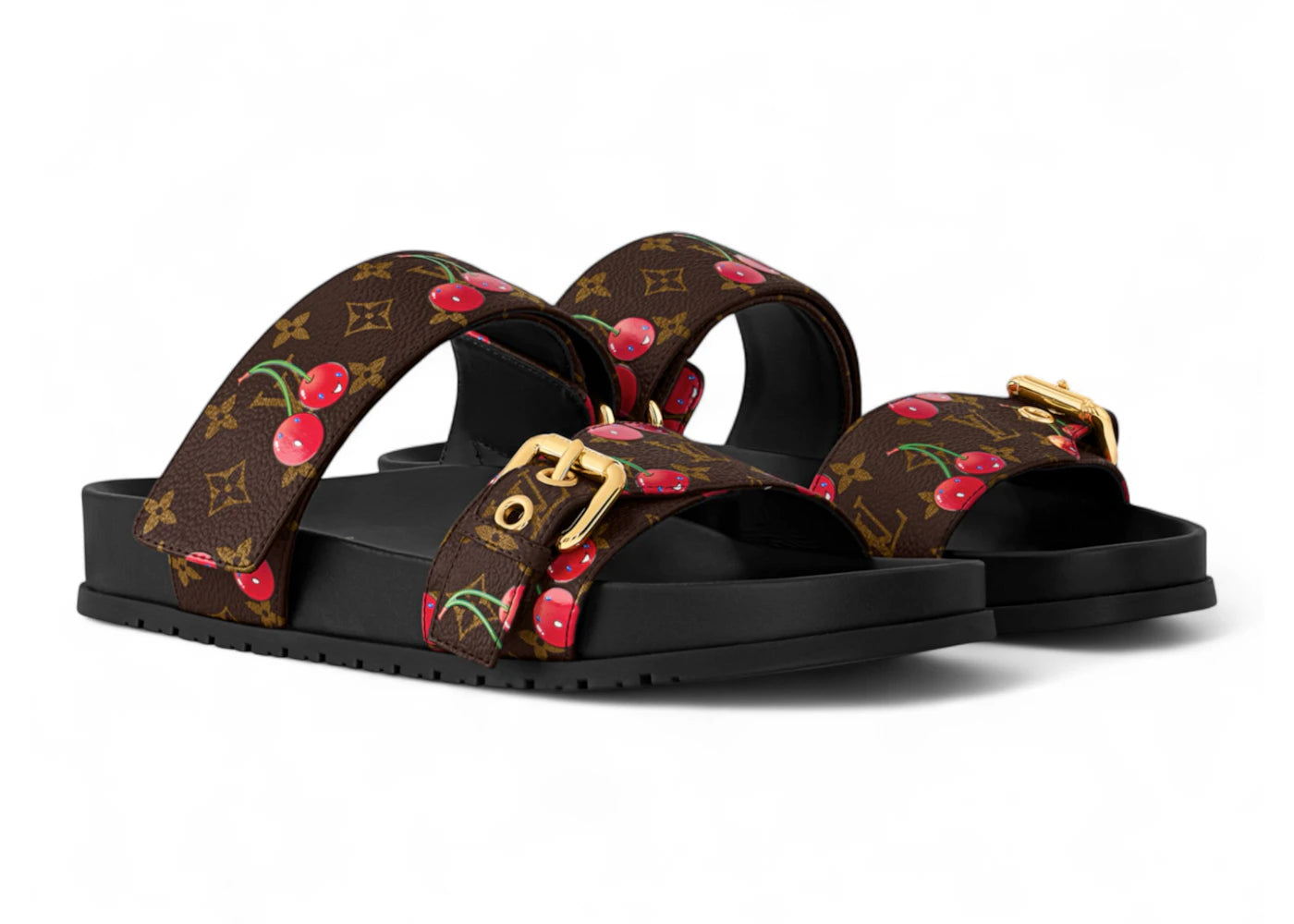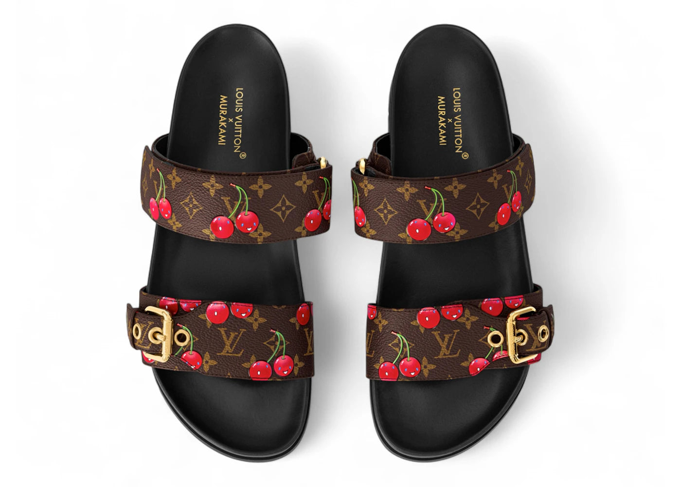 Louis Vuitton Cherry Bom Dia Flat Comfort Mule x Takashi Murakami Brown Monogram Cherry