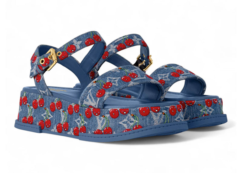 Louis Vuitton Cherry Maya Platform Sandal x Takashi Murakami Denim