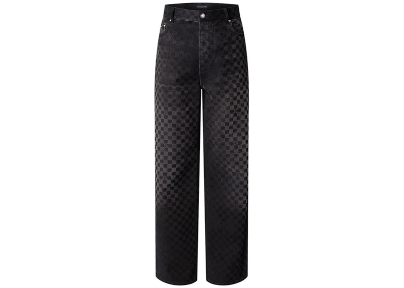 The Louis Vuitton Flocked Damier Denim Wide-Leg Pants Black is now available at Side Kicks!